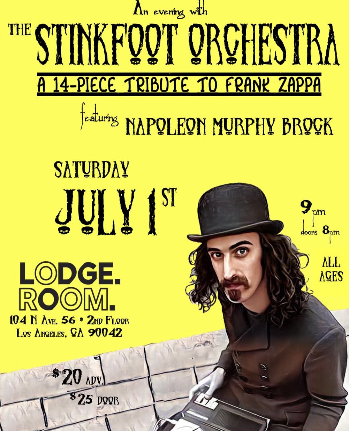 The most profound, uplifting, invigorating, imaginative, and hilarious performance you’ve never seen has just made its way through Los Angeles. On the evening of Saturday, July 1st, The Stinkfoot Orchestra, a rocking, 14-piece combo, truly captured the spirit of the most prolific musical artist of all time. Dedicated to recreating the magnificent musical magic of Frank Zappa, the Stinkfoot Orchestra meticulously played hours of Zappa's most iconic and mesmerizing discography. Although Zappa's musical career spans over three decades, The Stinkfoot Orchestra took the listener back in time every year. Additionally, a special guest appearance by Ike Willis brought back the crowd to the good old days of Joe's Garage. Alongside the most-skilled musicians in Los Angeles, the entire audience was screaming every lyric of every song. It would suffice to say that the energy in the room grew exponentially with each number.